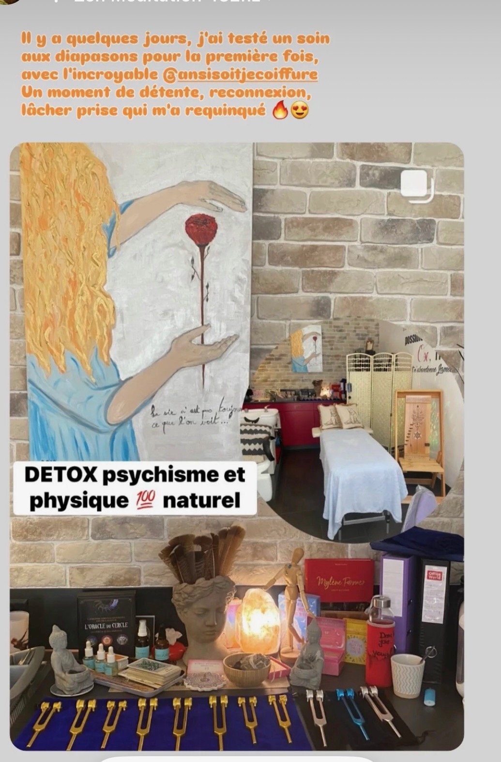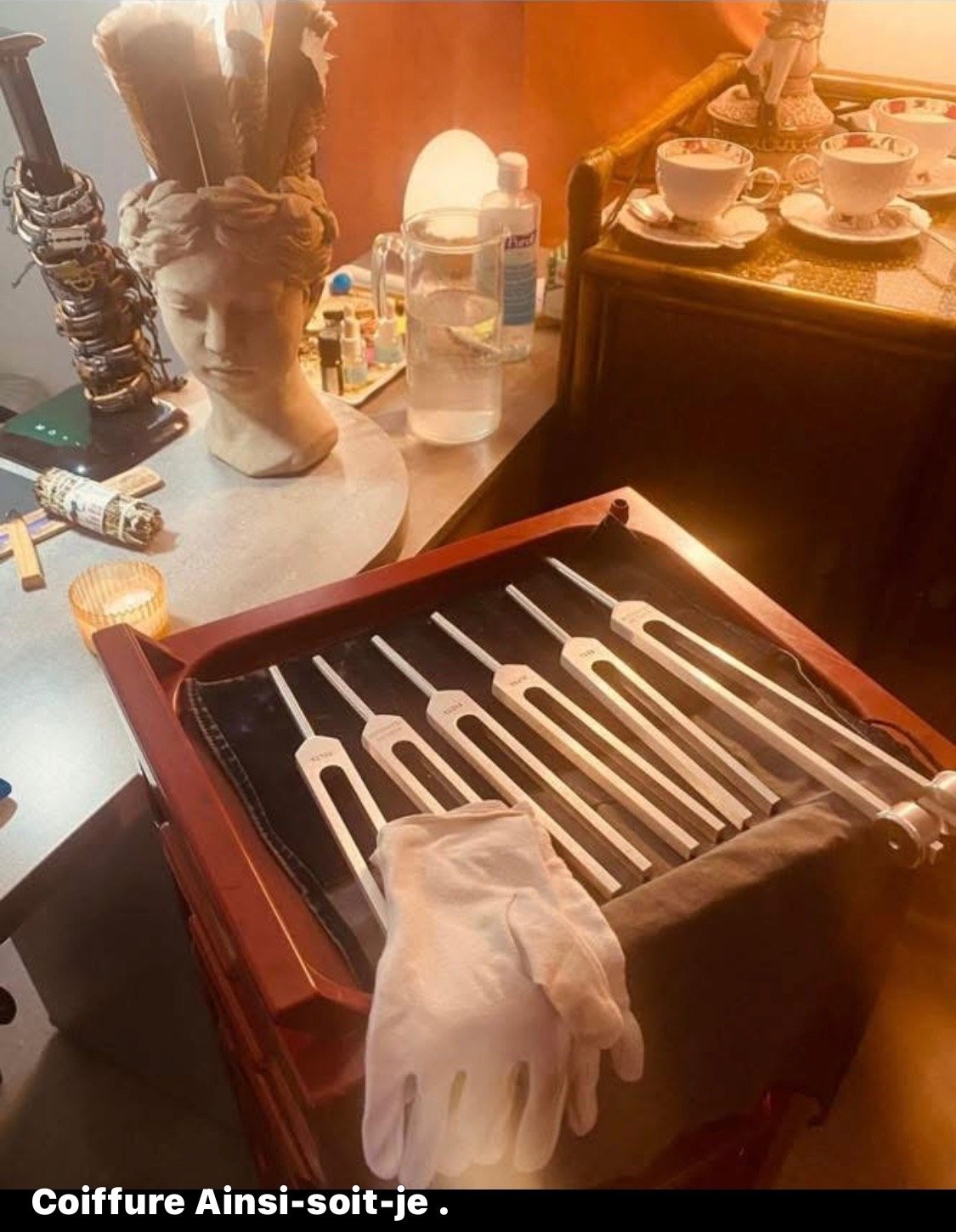 - Un soin qui libère les tensions, apaise le mental et réharmonise les émotions grâce au vibrations des diapasons 128Hz.
