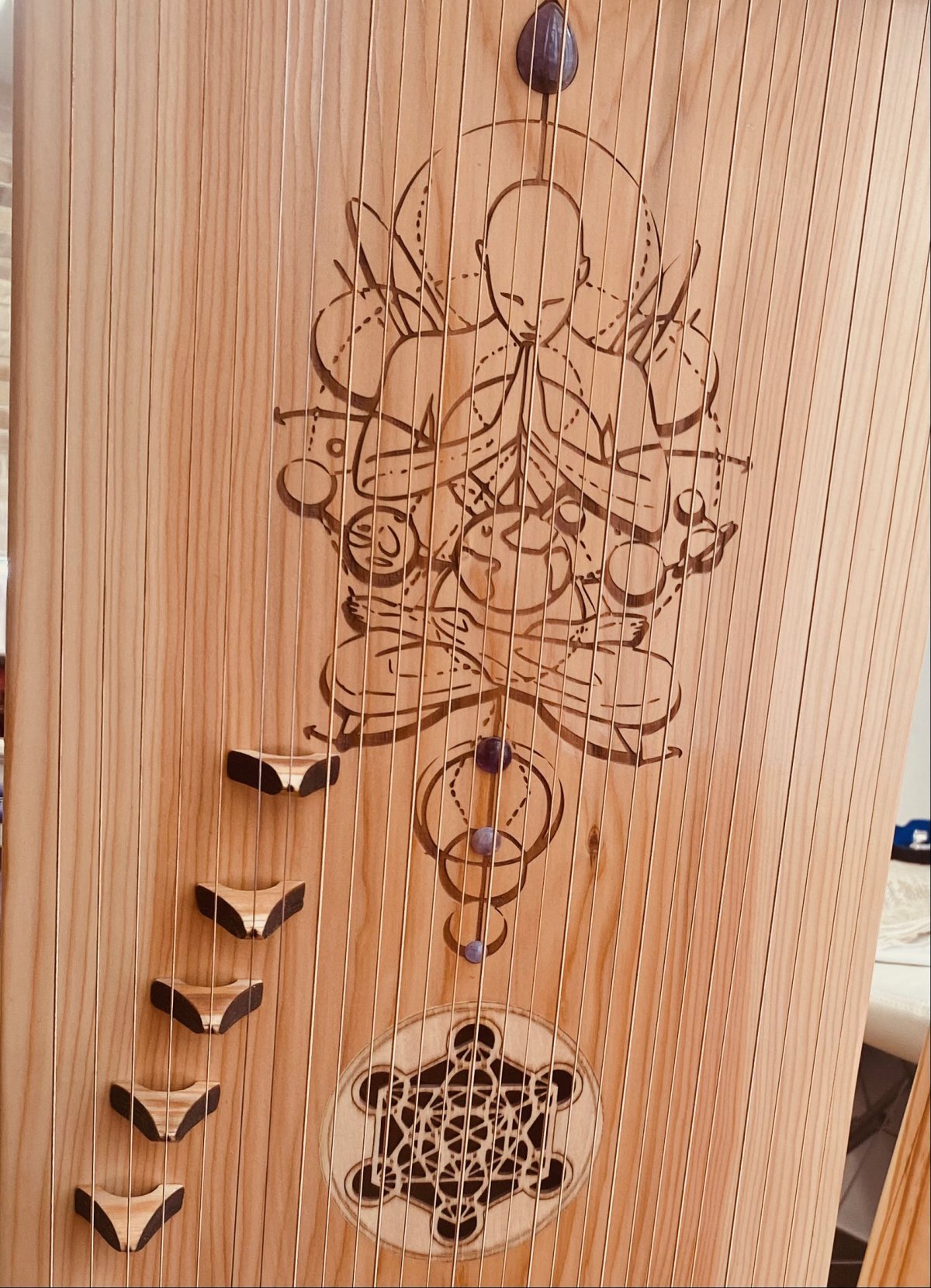 La chaise sonore a été conçue sur mesure pour la thérapie par diapasons. Elle diffuse des vibrations sonores grâce à des cordes musicales intégrées, qui imprègnent votre corps et votre esprit, favorisant une harmonisation complète de l’énergie.